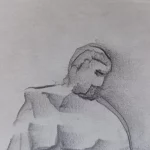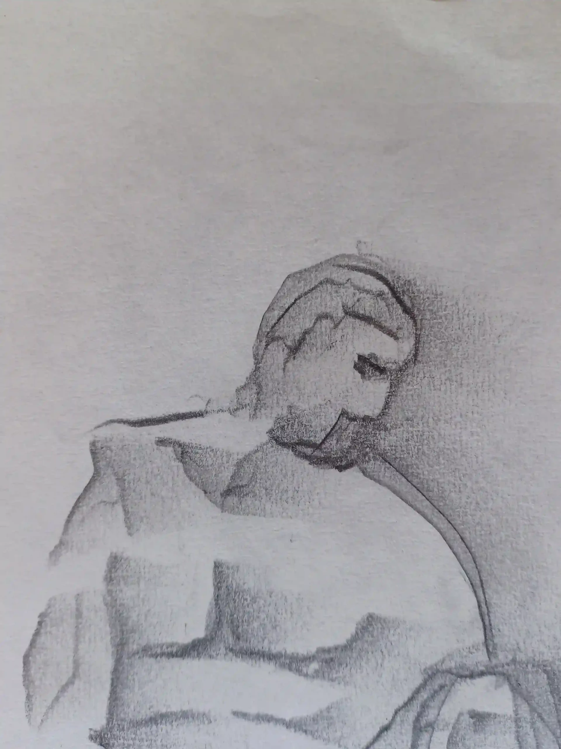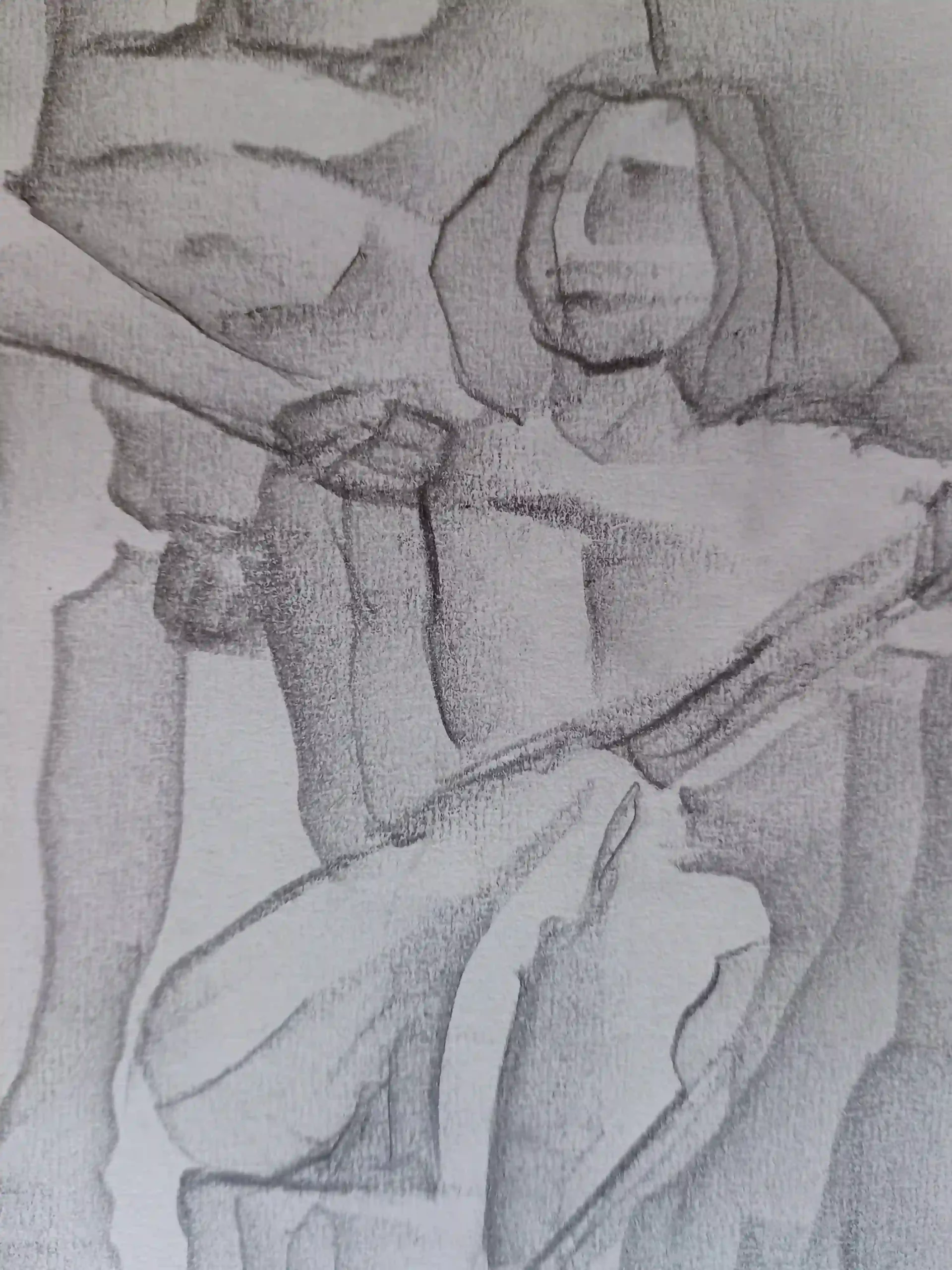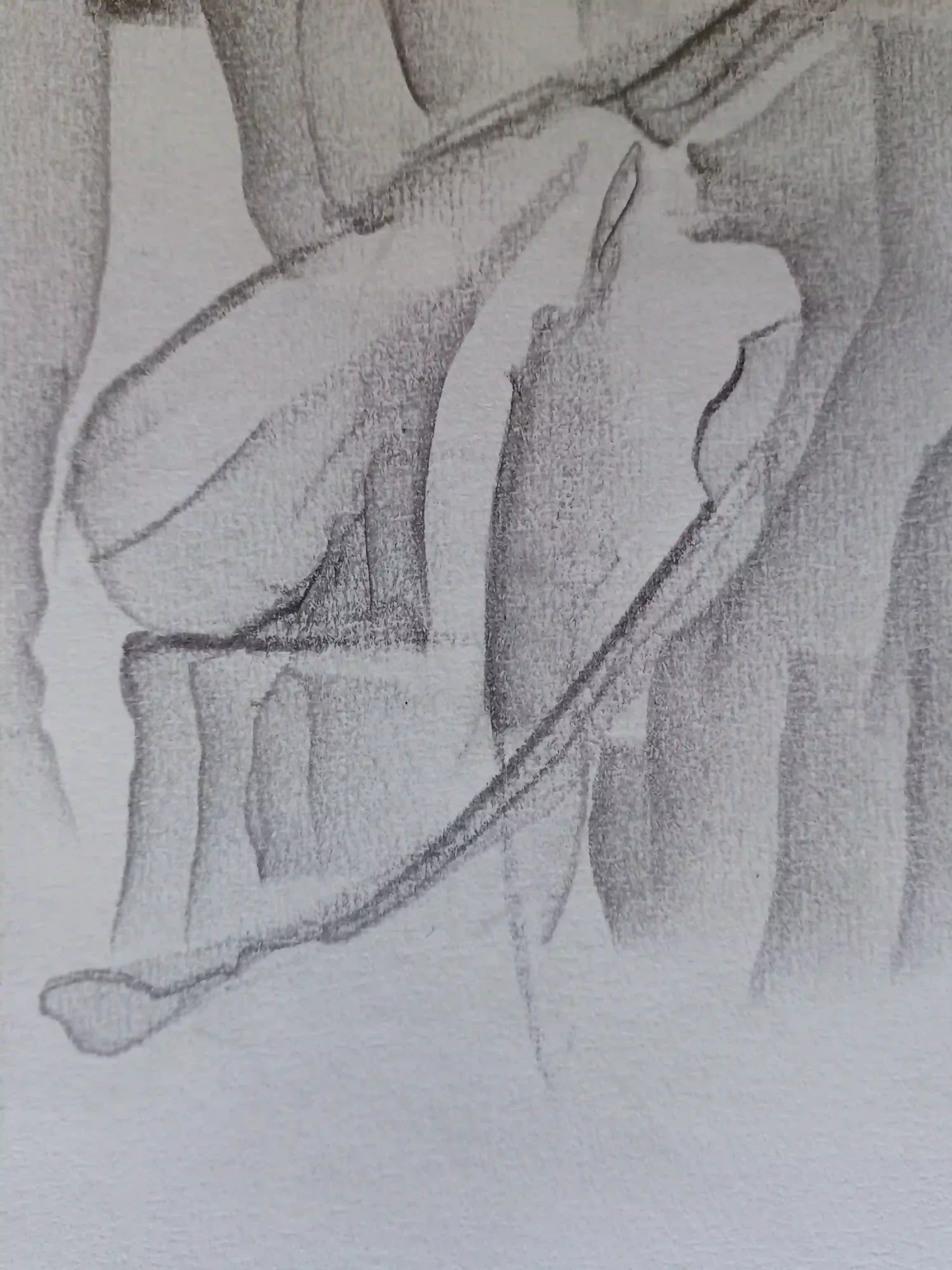 Cuando me senté a crear esta obra, tenía claro que quería explorar la esencia de las emociones humanas utilizando la mínima cantidad de elementos posibles. Para ello, me limité a una mina de grafito, trabajando en horizontal y arrastrando el trazo para conseguir un degradado tonal que, aunque sencillo, es capaz de evocar profundidad. La técnica es un reflejo del proceso académico en el que se inscribe esta pieza; el modelo se dibuja del natural, buscando capturar no solo su forma, sino su espíritu.