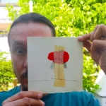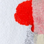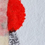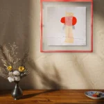 Obra artística "Descosido" colgada en pared, ilustración contemporánea en tinta con marco negro.
