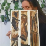 Toda la obra está hecha en la misma técnica, utilizando nogalina para obtener esos tonos sepia, lejía y tinta china para crear esas sombras drásticas. Mi intención principal con esta obra fue construir una composición que reflejara la escultura del cuerpo humano femenino, manteniendo esa sensualidad que caracteriza a la figura femenina. Cada trazo está pensado para transmitir volumen y sensualidad, algo que logré en pocos minutos con esta técnica de abocetado rápido.