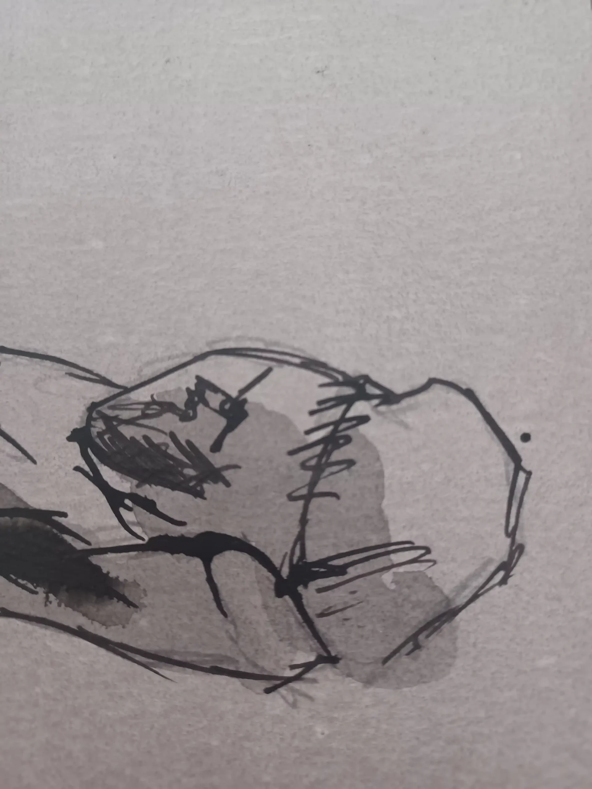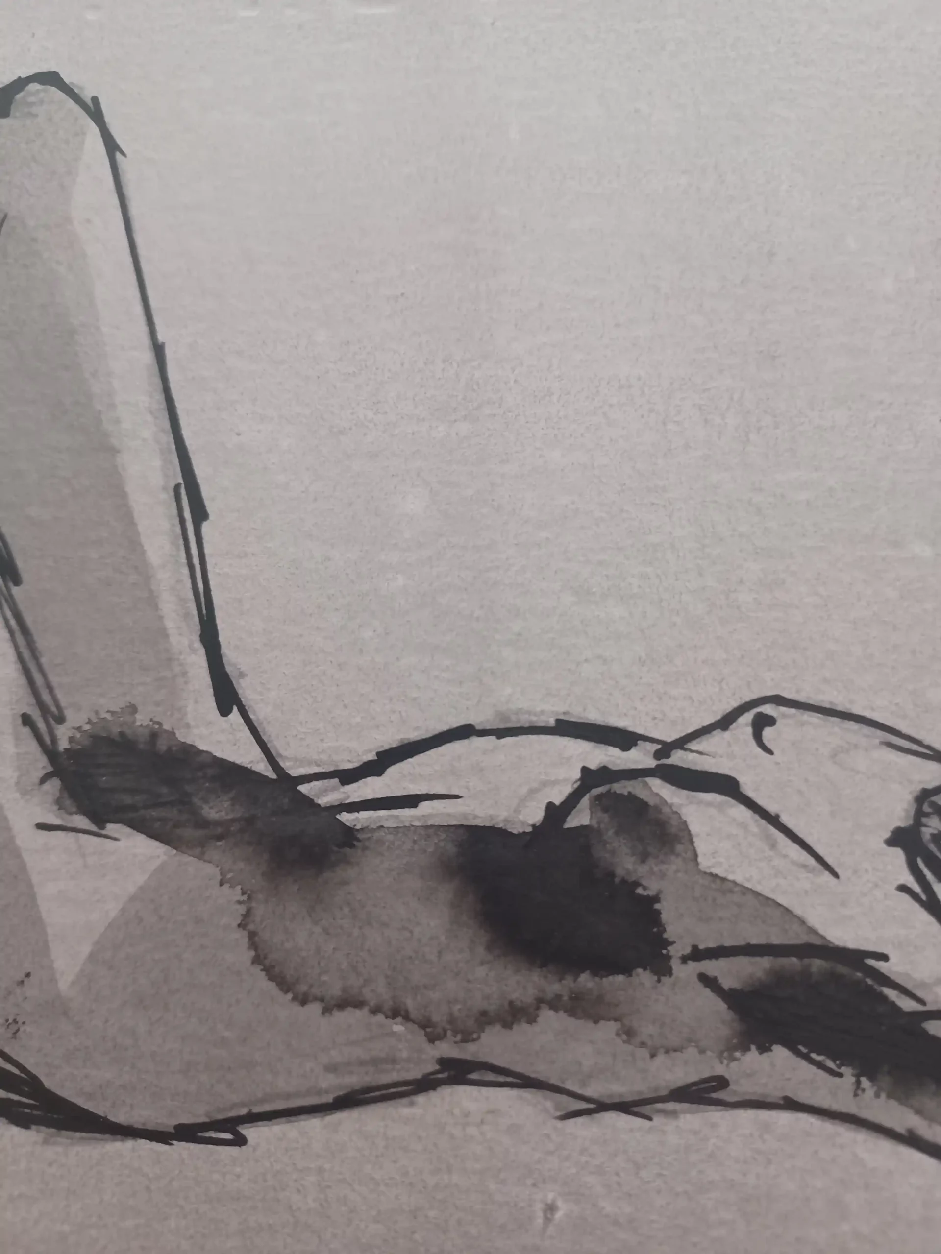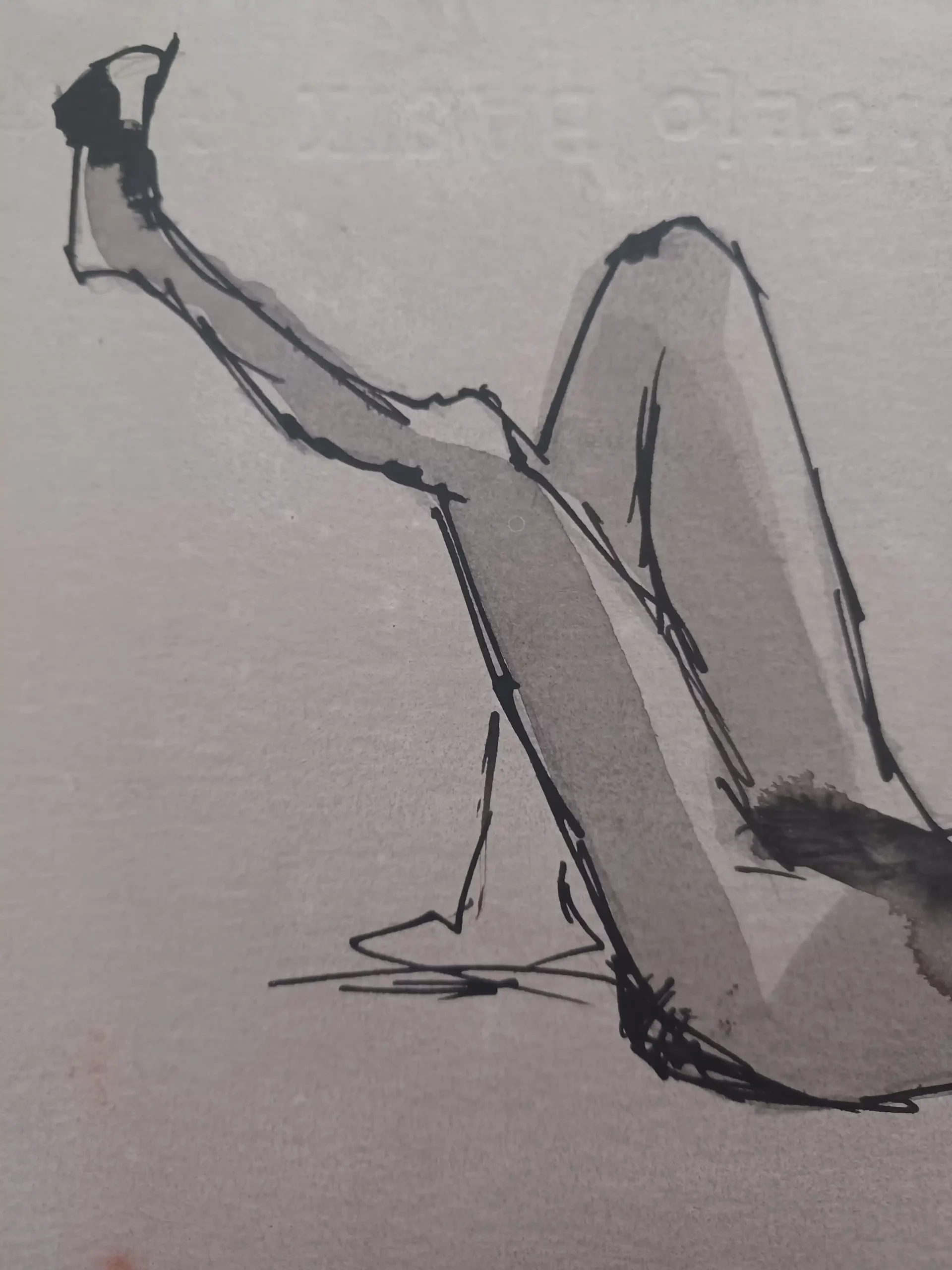 Fue una tarde de invierno en Granada cuando «Cuerpo en Esencia» empezó a tomar forma. En la academia, la luz cruda y los focos trazaban cada curva y sombra del cuerpo de la modelo, creando un ambiente casi implacable. La urgencia del tiempo se reflejaba en el ritmo de la pose, en cada movimiento cambiante de la figura que exigía decisiones rápidas y certeras. Con un pilot y un pincel de tinta china, logré plasmar no solo una imagen, sino la esencia misma de ese momento. La modelo, con una pierna elevada y el torso aún tenso, encarna la fragilidad del instante, ese punto entre lo que ha sido y lo que nunca volverá a ser. La tinta, fluyendo con una brutalidad hermosa, dejó su rastro en el papel, convirtiendo cada trazo en una expresión de lo inasible, de lo que, al capturarse, ya empieza a desaparecer. Esta pieza espera encontrar un lugar especial, convirtiéndose en un nuevo valor para quien decida hacerla parte de su colección.
