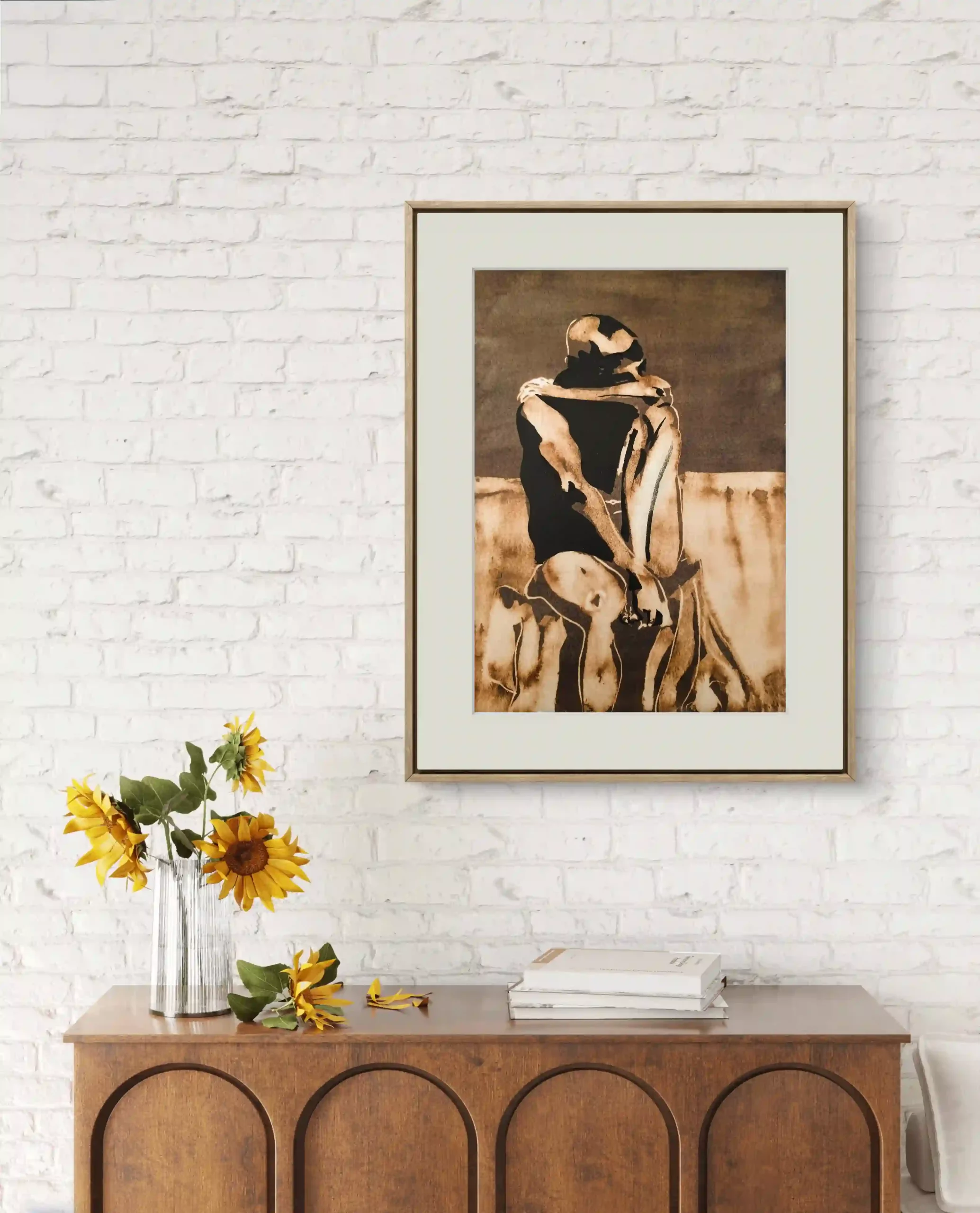 En resumen, este desnudo artístico en sepia no solo representa el cuerpo masculino, sino una serie de emociones y reflexiones sobre la vulnerabilidad, la introspección y la protección emocional. Estoy seguro de que cualquier coleccionista que aprecie tanto la técnica como el simbolismo de esta pieza encontrará en ella un lugar especial en su colección.