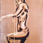Lo que hace especial a este dibujo es la manera en que la plumilla define delicadamente la sinuosidad del cuerpo de la modelo en ciertas partes. Después los pinceles que permitieron capturar las sombras y la lejía las luces que se formaban entre las costillas y la cadera de la modelo, las delicadas sombras bajo el homóplato, y la sutil oscuridad bajo la pierna. Todos esos detalles surgieron de un esqueleto inicial hecho con la plumilla, y poco a poco, la obra tomó vida en el papel. Sin duda, la técnica de la plumilla es una de mis favoritas porque me permite una expresión directa y sin filtros, donde cada línea cuenta una historia.