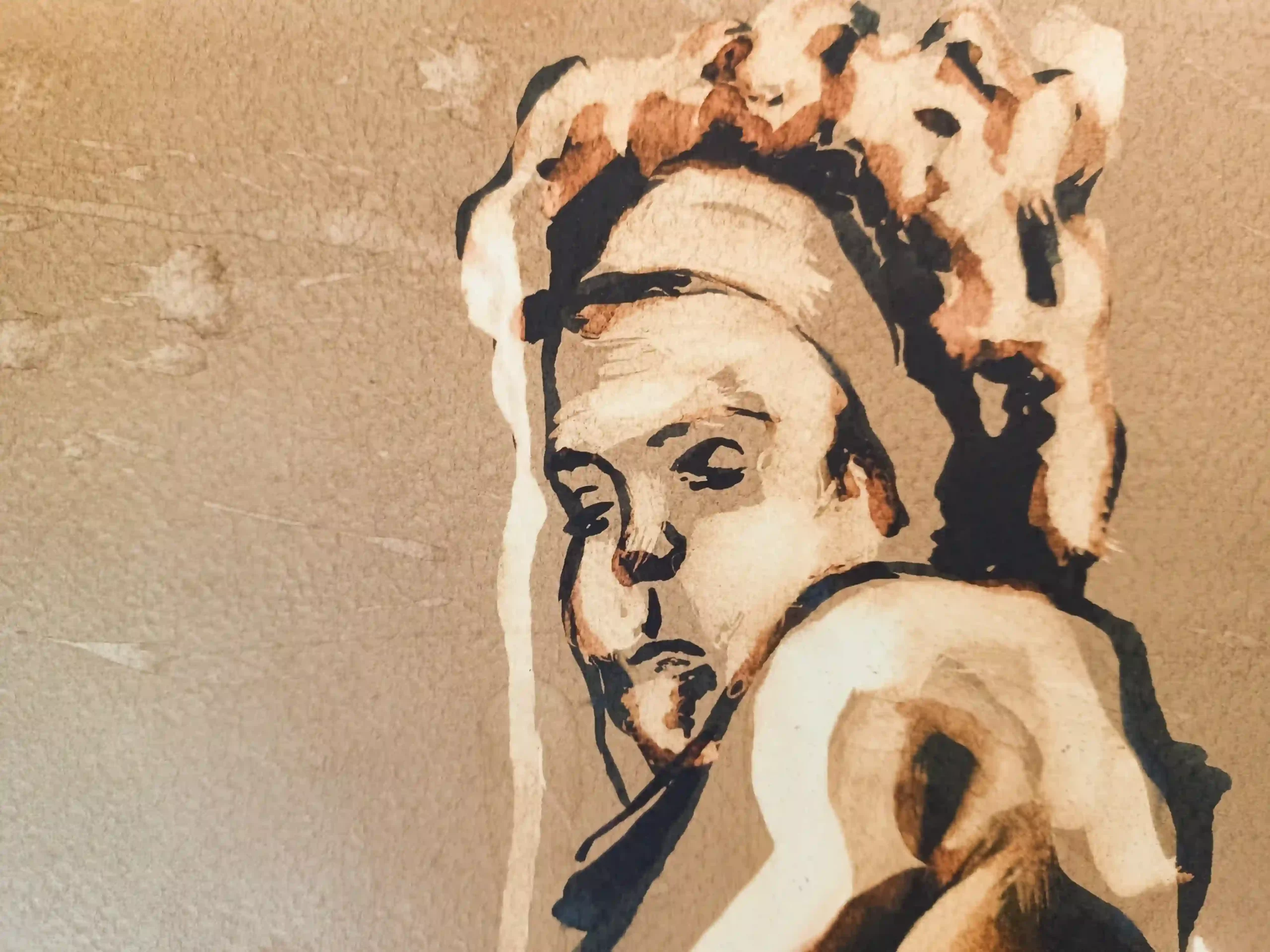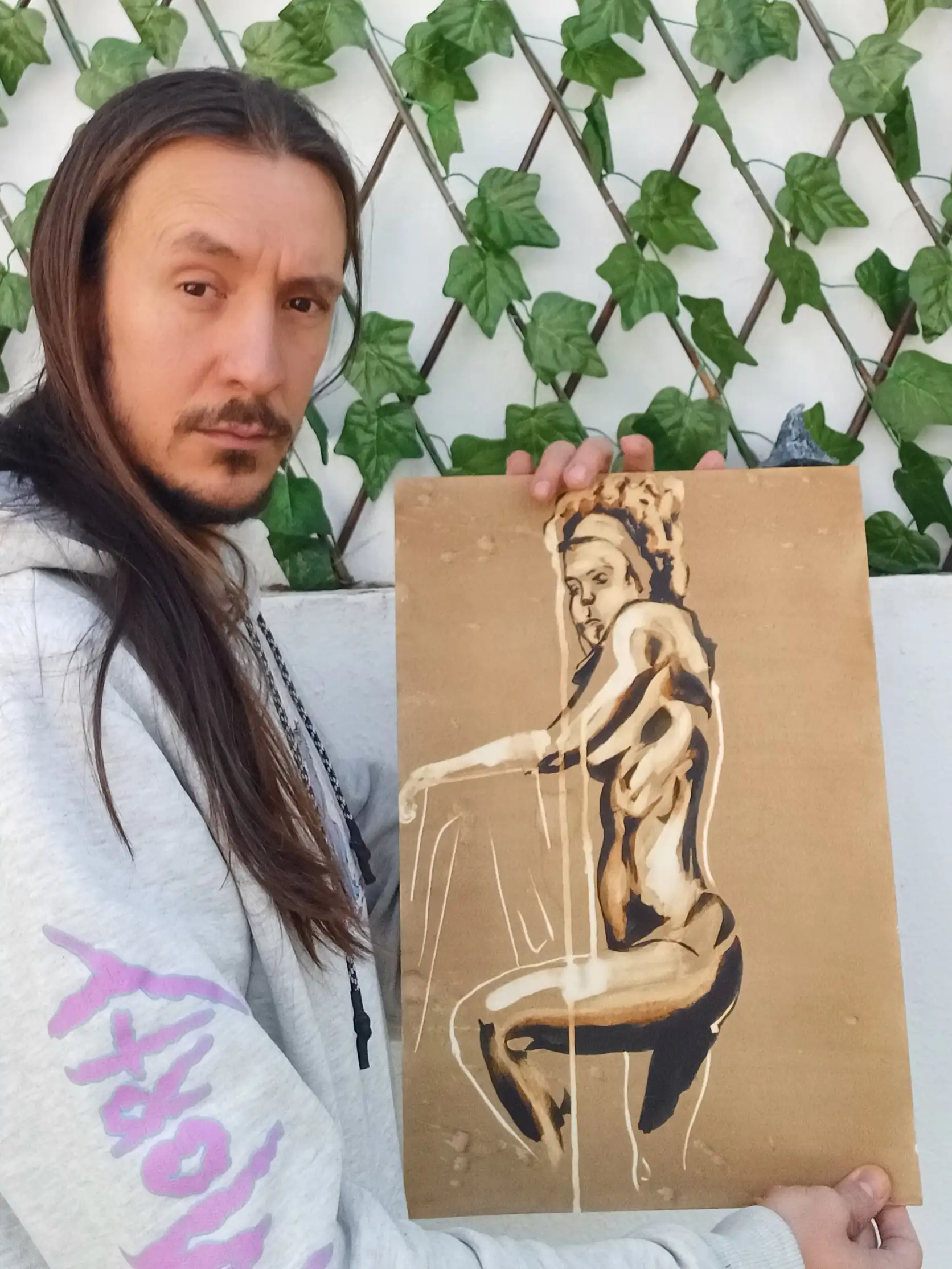 Técnica: Nogalina, lejía y tinta china.