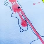 Hay veces en que la mancha habla primero, y tú solo escuchas. Estudio de manchas y desnudos fue una de mis primeras experiencias con la técnica de la decalcomanía. Estábamos en clase, en la academia de arte, y sonaba música experimental. El profesor nos leía fragmentos de textos antiguos, nos descolocaba con ritmos disonantes o voces distantes. En ese ruido, en esa atmósfera de rareza, decidí lanzar gotas de pintura roja desde lo alto, dejando que se estrellaran contra el papel. Luego incliné la hoja para que la tinta chorreara. Lo demás fue escuchar con los ojos.