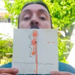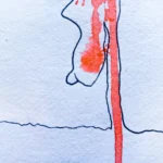 Empecé a ver cosas. Una cara, un ojo, una silueta que se insinuaba. Dibujé un pecho colgante, un agujero como una nariz, un pezón, una línea que sugería carne, caída, cuerpo. Y en medio de esa figura, un punto negro se desprendía como un escupitajo —o algo peor—. No lo edité, no lo embellecí. Lo dejé ahí. Esa mezcla entre ilustración figurativa y gesto abstracto me parecía suficiente. Honesta. Sucia. Viva.