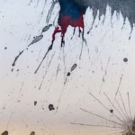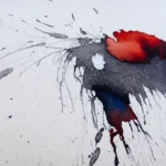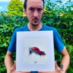 Obra artística "Descosido" colgada en pared, ilustración contemporánea en tinta con marco negro.